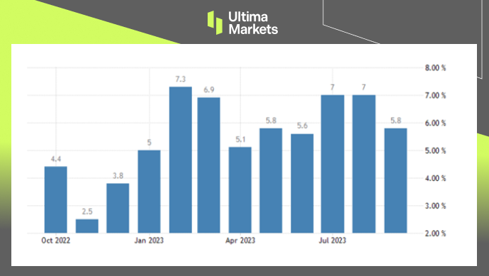 日本 9 月零售额较去年同期成长 5.8%。这比 7 月和 8 月销售额成长 7% 的增幅要慢。 9 月的涨幅与预期的 5.9% 涨幅基本一致。尽管如此,这仍然是日本零售额连续第 19 个月成长。这表明消费者支出在疫情期间下降后持续复苏。