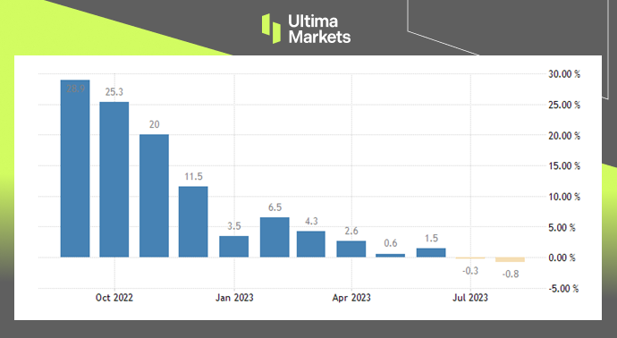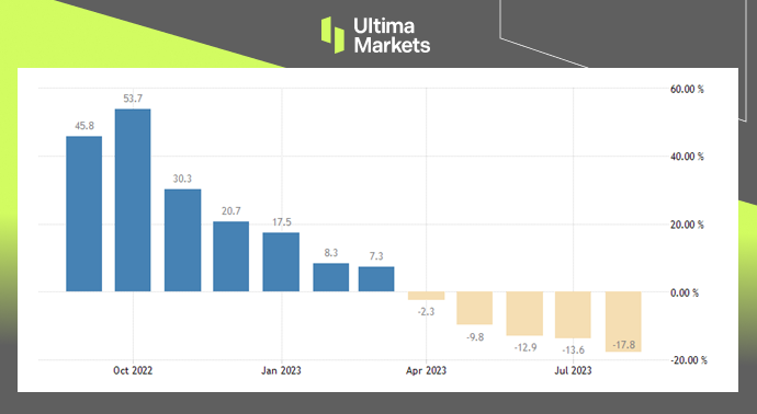 日本的贸易逆差从去年同期的 27,904 亿日圆大幅减少至 2023 年 8 月的 9,305 亿日元,而市场估计的缺口为 6,591 亿日圆。由于外国需求(尤其是中国需求)疲软,出口年减0.8% 至79,944 亿日圆,连续第二个月下降;受能源成本和日圆走强的拖累,进口额下降17.8%,至89,248 亿日圆,连续第五个月下降,也是2020 年8 月以来的最大跌幅。