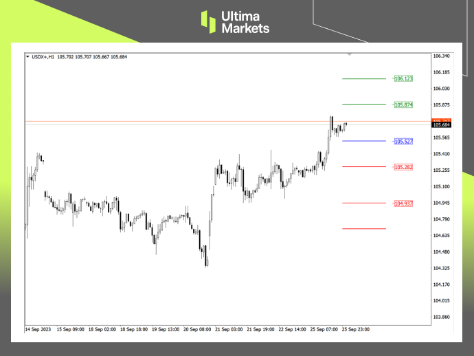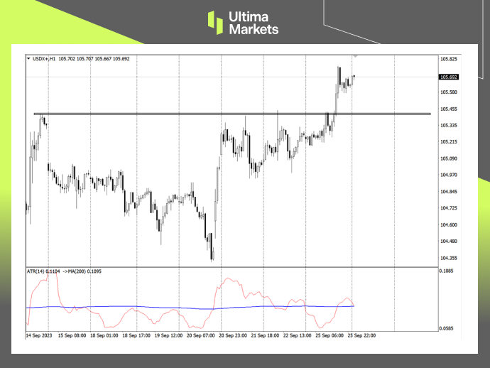 (美元指数1小时周期图,来源Ultima Markets MT4)