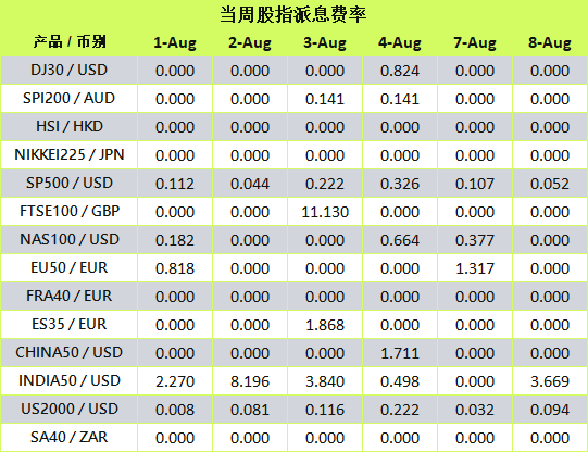 您可在账户历史中查看到包含有以下注释「Div & 股指名称 & 净手数 」的资金扣补记录,