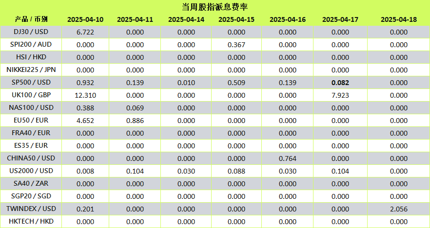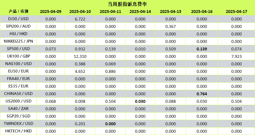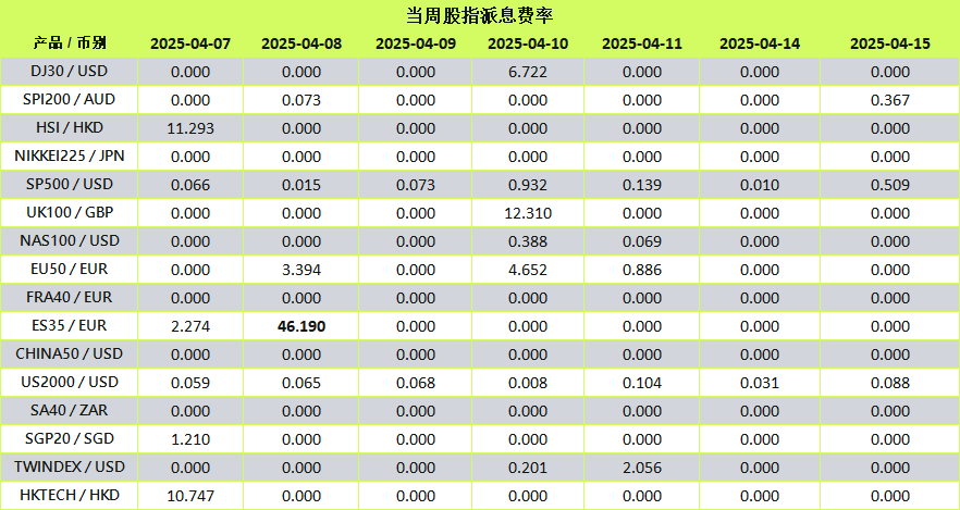 当股指进行除息时,派息(Dividend)将另行以资金扣补的方式进行调整。