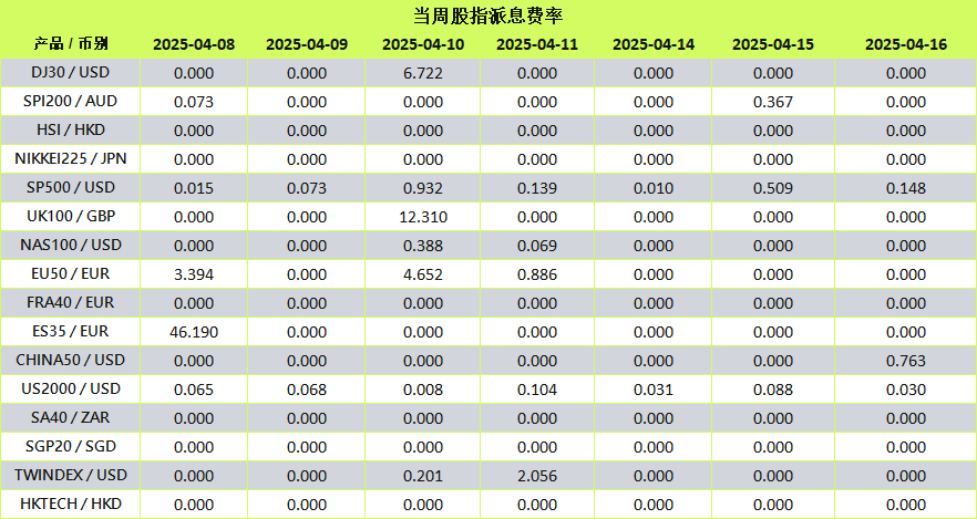 当股指进入除息日时,系统将以资金调整形式自动处理股息变动。