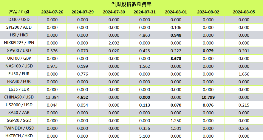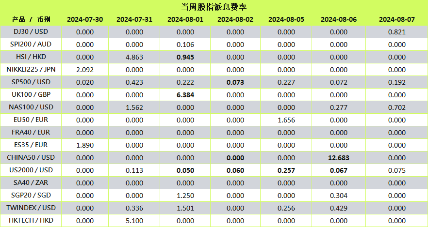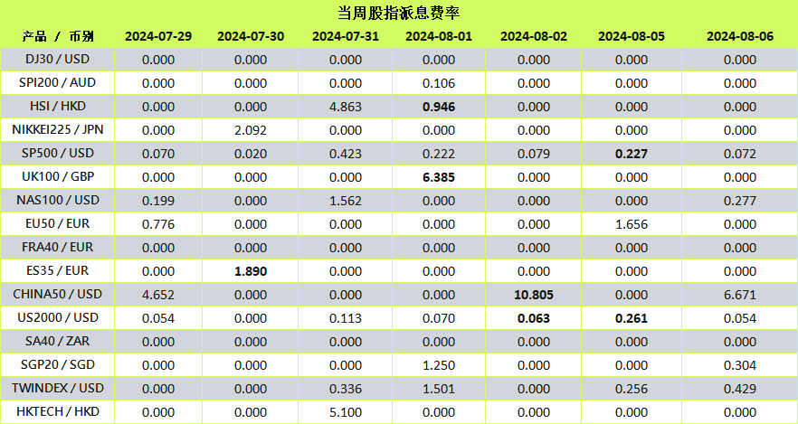 当股指进行除息时,派息(Dividend)将另行以资金扣补的方式进行调整。