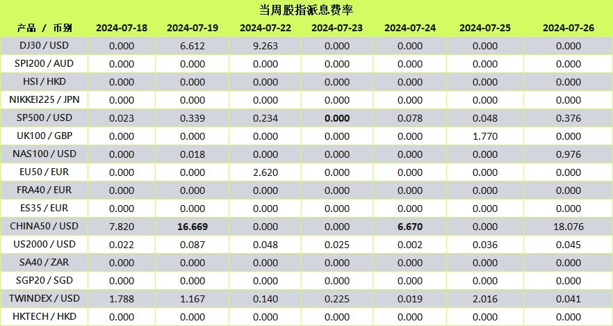 当股指进行除息时,派息(Dividend)将另行以资金扣补的方式进行调整。