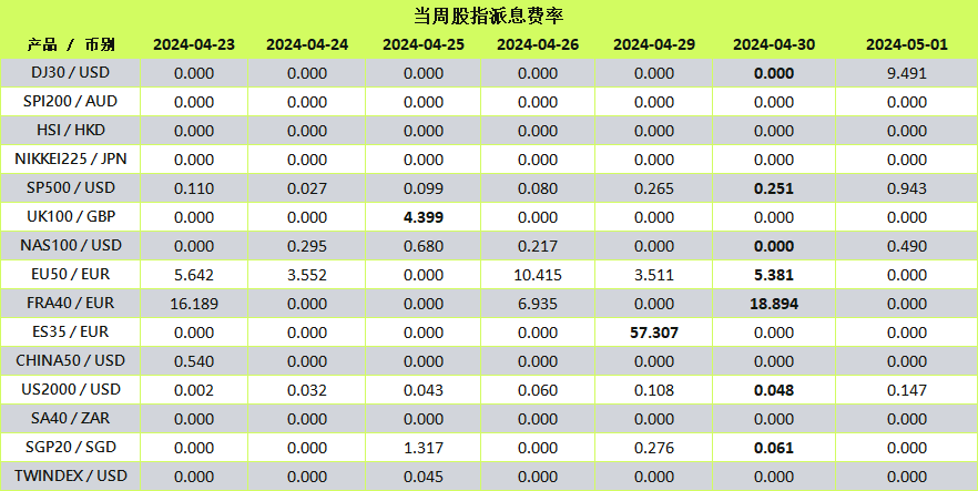 当股指进行除息时,派息(Dividend)将另行以资金扣补的方式进行调整。