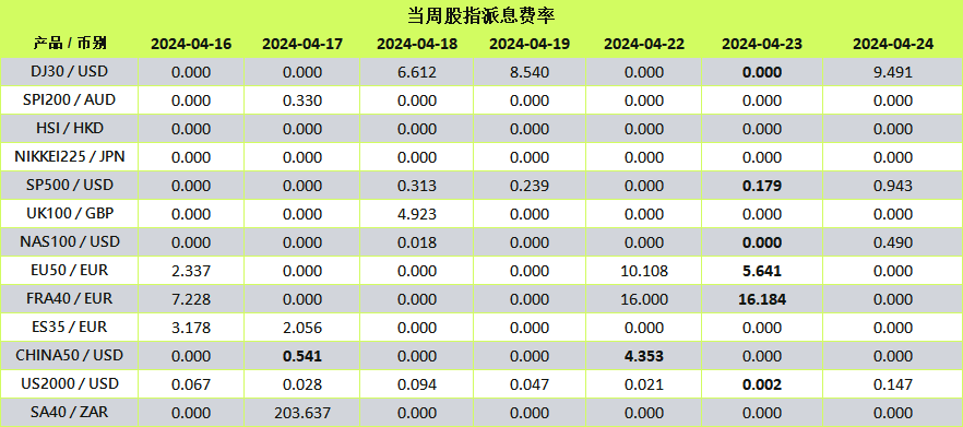 当股指进行除息时,派息(Dividend)将另行以资金扣补的方式进行调整。