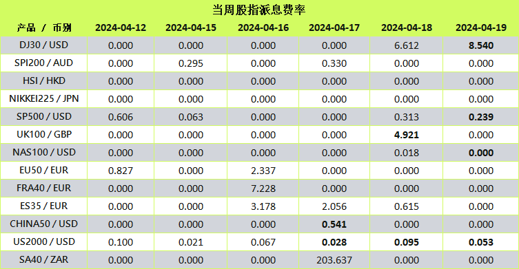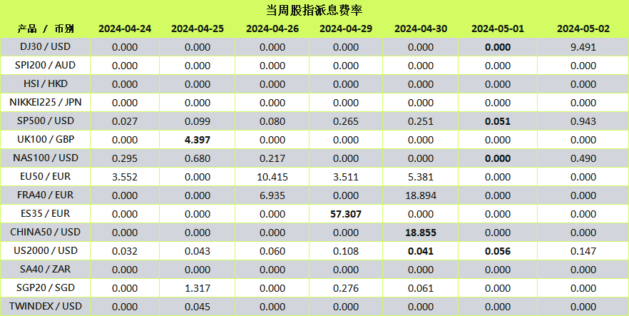当股指进行除息时,派息(Dividend)将另行以资金扣补的方式进行调整。