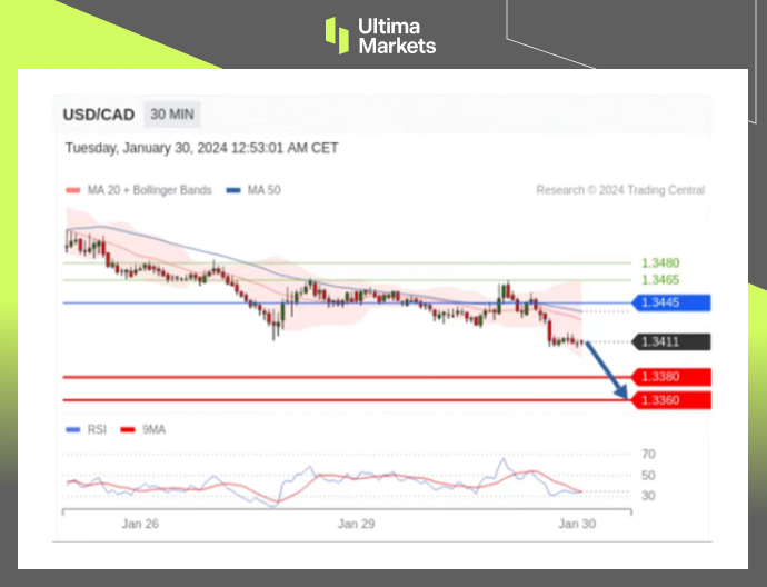 今日Ultima Markets 为您带来了 2024年 1月 30日美元兑加元的深入分析。