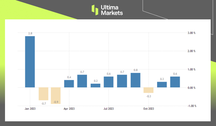美国去年12月零售销售月增0.6%,超越11月0.3% 增幅和市场预估之0.4%。 这一数据为三个月来最高,主要是由汽车销量大幅增长 1.2% 所推动。 排除汽车销量,零售额成长0.4%。 各类别的销售额普遍增加,例如非商店零售(1.5%)、服饰店(1.5%)、百货公司(1.3%)、各类零售商店(0.7%)、家居装修和园艺设备(0.4% )以及娱乐装备、嗜好、音乐用品和书籍 (0.3%),还有食品和饮料店 (0.2%)。 相反地,健康和个人护理(-1.4%)、加油站(-1.3%)、家具店(-1%)和电子电器(-0.3%)的销售额下降。 食品服务和饮酒场所销售数据则持平。 扣除汽车、燃料、建筑材料和食品服务后,核心零售额显著增加 0.8%,为 7 月以来的最巨增幅。 回顾2023年全年,未调整的零售额成长3.2%。