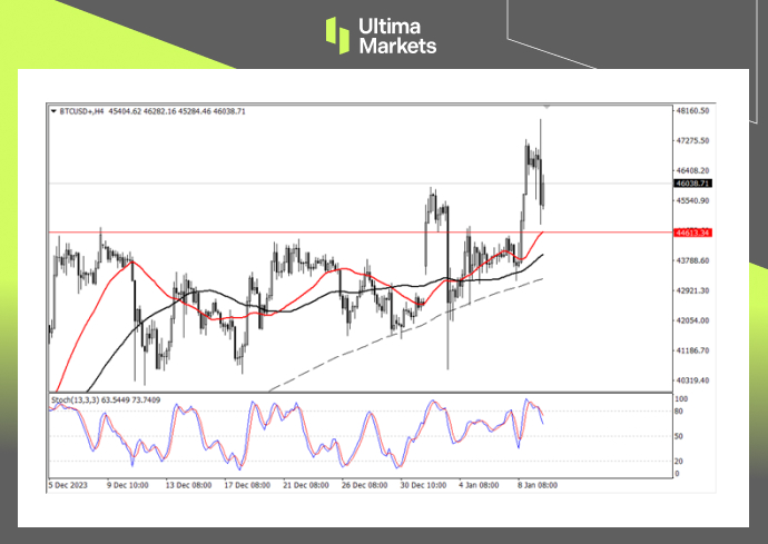 2024年1月10日現在、ビットコインと米ドルに対するテクニカル分析をお届けします。