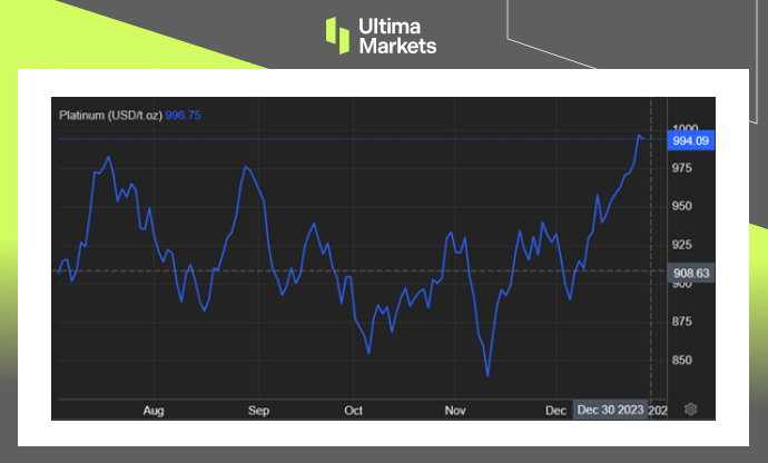 プラチナ先物は、ドル安と景気見通しの改善を背景に950米ドルを突破し、約6ヵ月ぶりの高値を記録した。米国と欧州のインフレ鈍化に関する統計により、投資家は主要国の中央銀行による2024年の早期利下げを予想している。貴金属は、2023年から2024年にかけて供給ギャップが続くことも下支え要因となっている。世界プラチナ投資評議会(WPIC)は、今年の需要が年率26%増の815万オンスに達すると予想し、供給不足量は107万オンスと、かつてない記録となった。この伸びはパラジウムの代替と需要増によるものである。その一方で、南アフリカの電力不足の深刻化とロシアの減産により、供給量は3%減の708万オンスになると予想される。しかし、触媒コンバーターの用途が減少しているため、年初来のプラチナ価格は8%下落したままである。プラチナ価格の反発は、電気自動車市場のシェア拡大と中国の小幅な景気回復が重荷となっている。