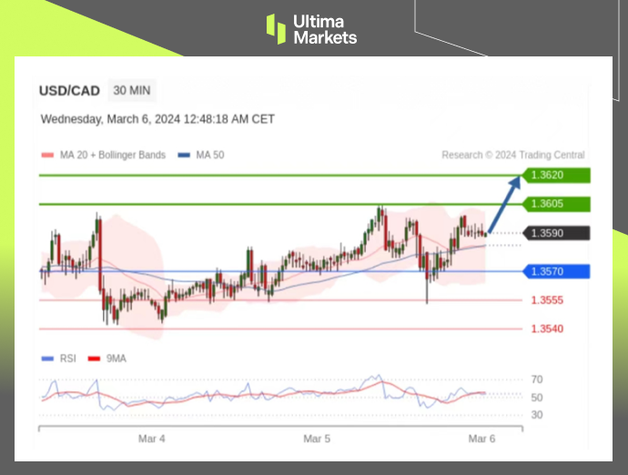(米ドル/カナダドル30分足チャート。情報源:Ultima Markets APP)