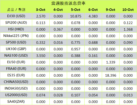• 上述數據皆以各指數所屬的基礎貨幣幣種表示。根據市場慣例,實際執行數據可能有所變動,具體請依據MT4軟件為準。