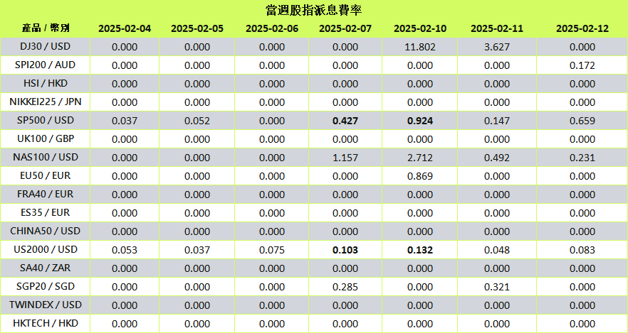 當股指進入除息日時,系統將以資金調整形式自動處理股息變動。