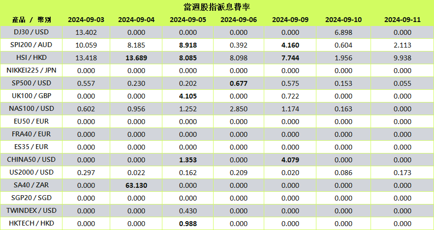 當股指進入除息日時,系統將以資金調整形式自動處理股息變動。