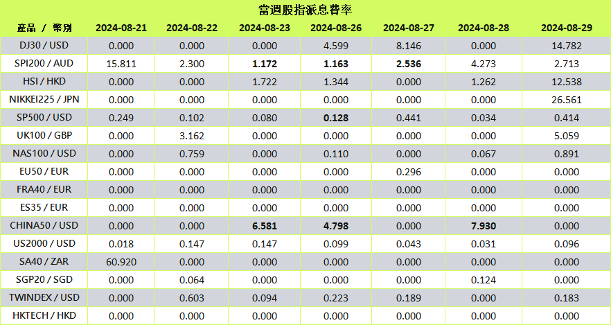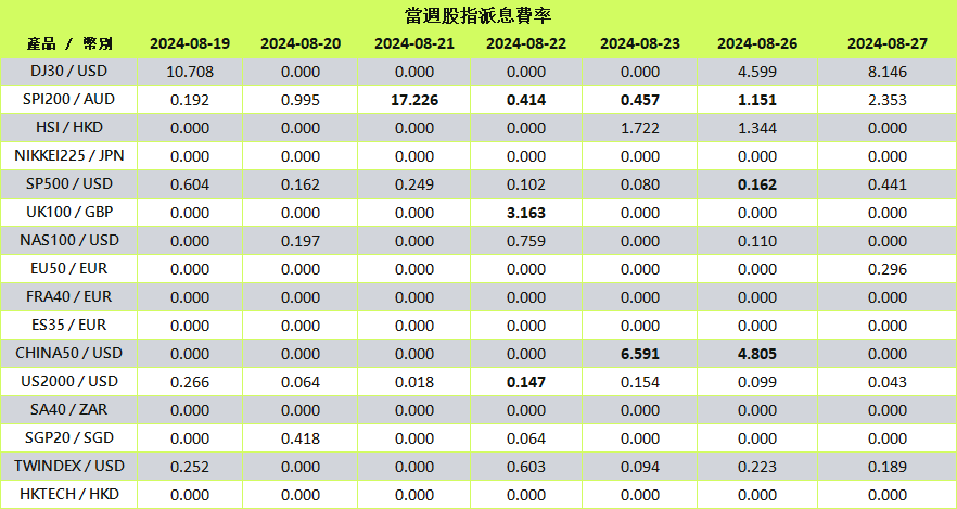 當股指進入除息日時,系統將以資金調整形式自動處理股息變動。
