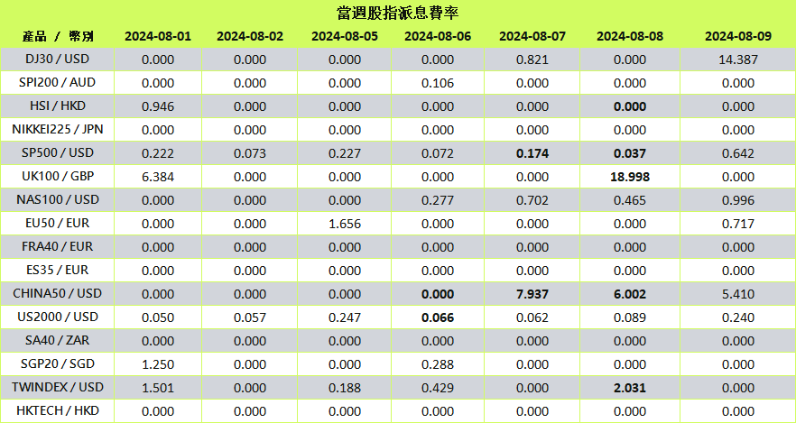 當股指進入除息日時,系統將以資金調整形式自動處理股息變動。