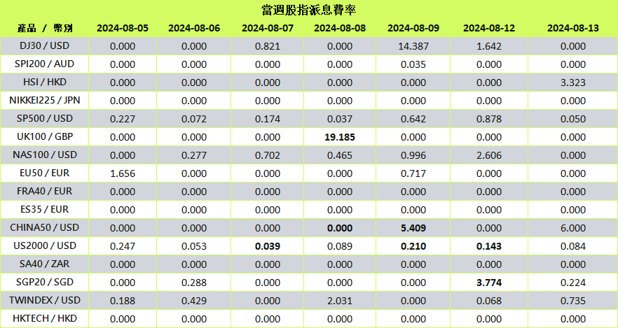 | 夏季銀行假期 | 2024.08.26 | 休市 | UK100, UK100ft, LongGilt |