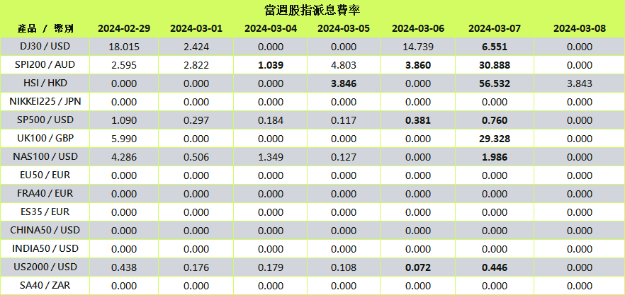 當股指進入除息日時,系統將以資金調整形式自動處理股息變動。