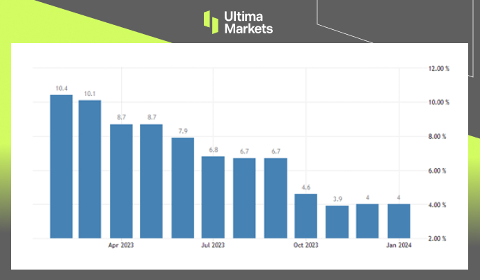 英國1月份年通膨率維持在4%,略低於市場預期的4.2%,而英國央行 (BoE) 最近預估通膨上升至 4.1%。 不過,調查也發現去年最後幾個月的薪資成長下滑速度緩於預期,代表英國就業市場緊稍,需要更長冷卻期。 因此英國央行可能會推遲降息步驟。