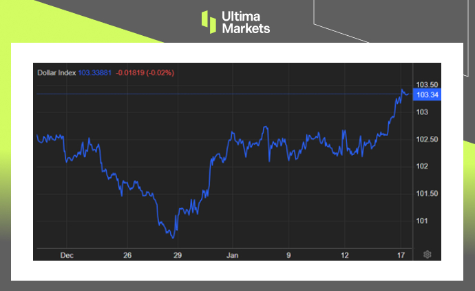 由於投資者修正對降息的期待,美元指數週三觸及103.4,創下近一個月來的最高點。 聯準會理事克里斯多福沃勒(Christopher Waller)表達對經濟充滿信心,他表示”隨著經濟活動和就業市場強勁,通膨率逐漸下降至2%,我認為沒有理由像過去那樣迅速調整或降息。” 根據利率點陣圖,3月降息25個基點的可能性目前為61%,低於上週的77%。 美元兌多種貨幣表現強勁。 歐元下跌超過 0.5%,因投資者慎重評估歐洲央行官員的鷹派聲明,對比調查顯示未來12個月消費者通膨預期大幅下降。 另外,數據顯示薪資成長慢於預期,英鎊下跌0.7%,增加了英國央行最早於5月實施降息的可能性。